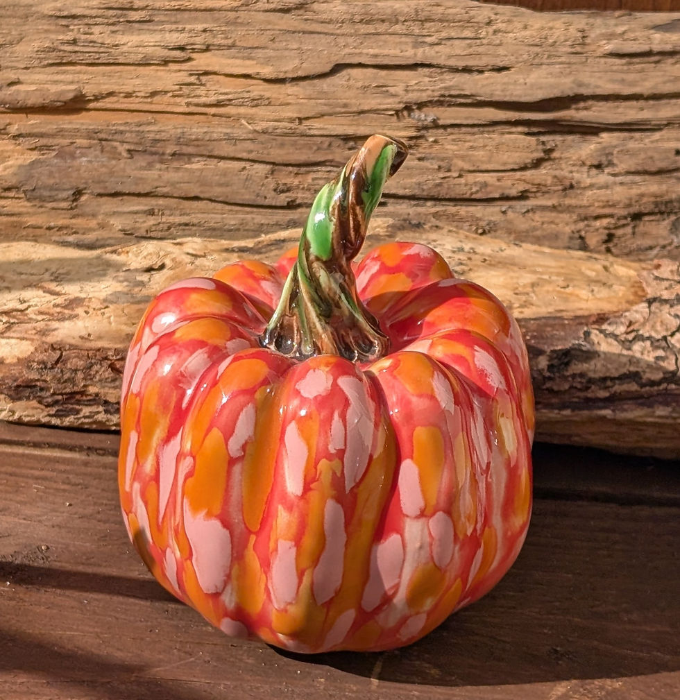 Green/Orange Mottled Ceramic Pumpkin Sculpture