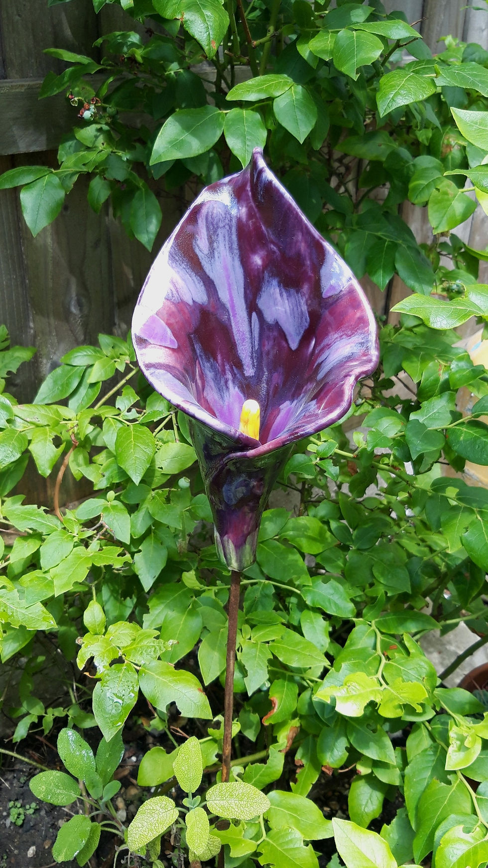 Red Ceramic Poppy Flower Bird Bath Bowl With Metal Stand